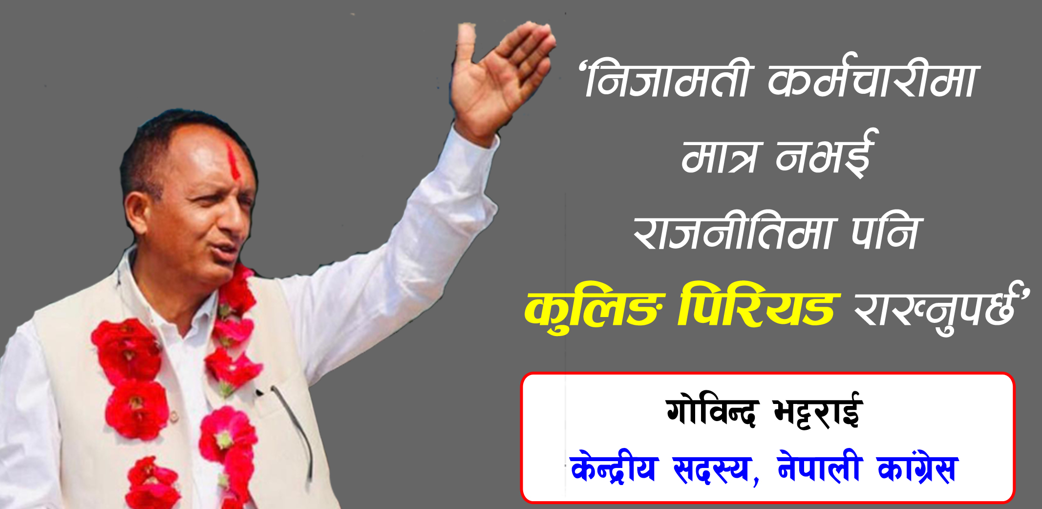 नेपाली कांग्रेसका केन्द्रीय सदस्य गोविन्द भट्टराईले राजनीतिमा पनि कुलिङ पिरियड राख्नुपर्ने बताएका छन् ।