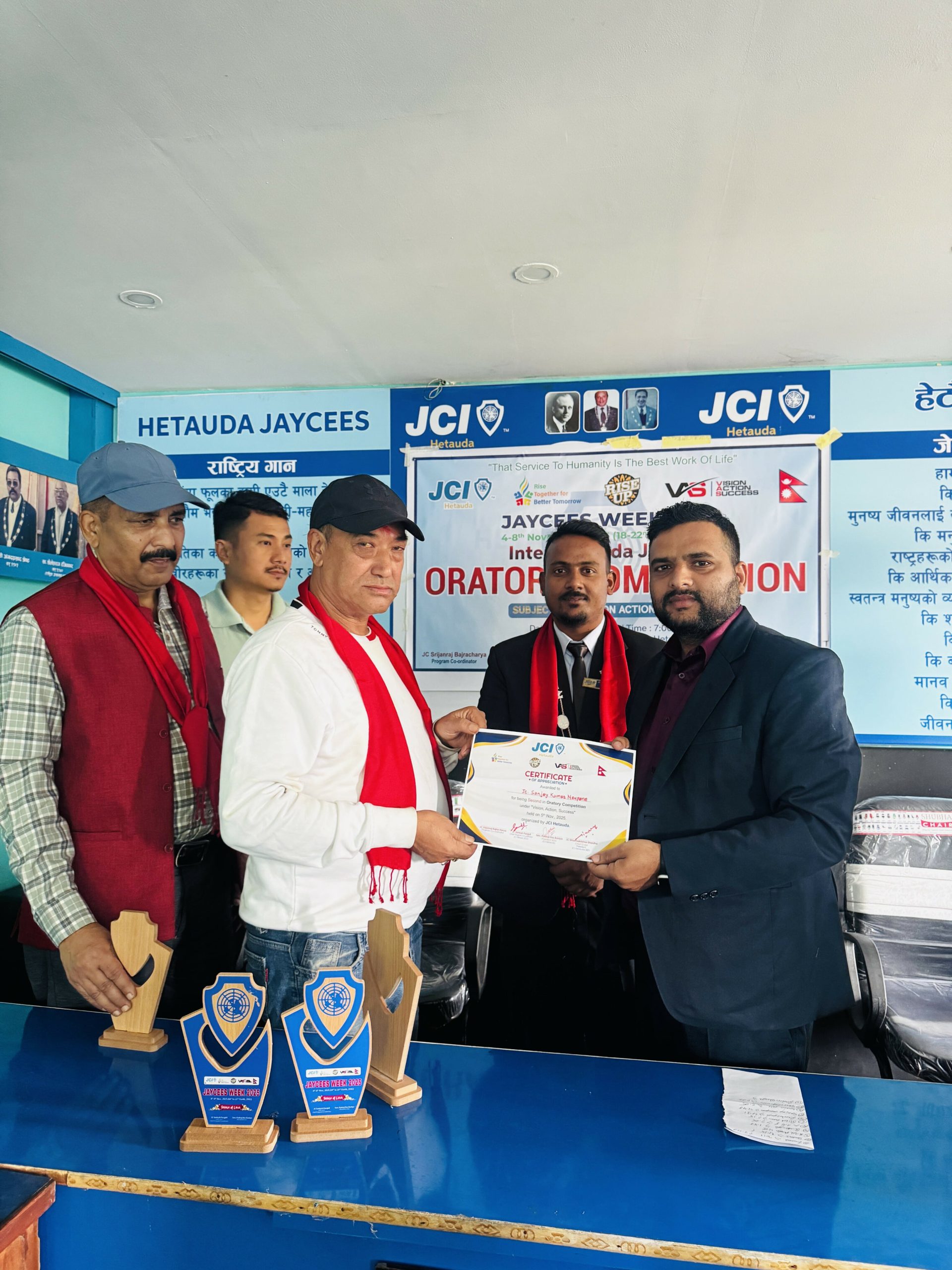हेटौंडा । जेसीज सप्ताह–२०२५ अन्तर्गत जेसीआई हेटौंडाले बुधबार ‘भिजन, एक्सन, सक्सेस’ शीर्षकमा अन्तर जेसीज वक्तृत्वकला प्रतियोगिता सम्पन्न गरेको छ।