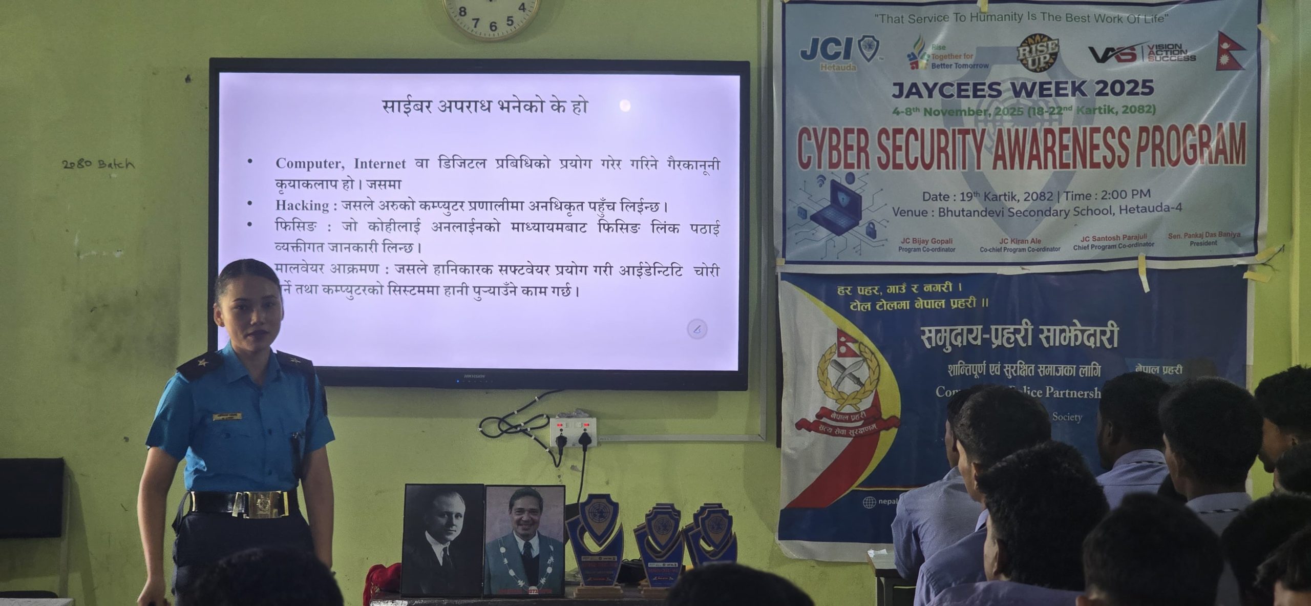 कक्षा ९ र १० का ७० जना विद्यार्थी सहभागी उक्त कार्यक्रममा साइबर अपराधबाट जोगिन आवश्यक व्यवहारिक सावधानीहरूबारे पनि सचेतना फैलाइएको थियो ।