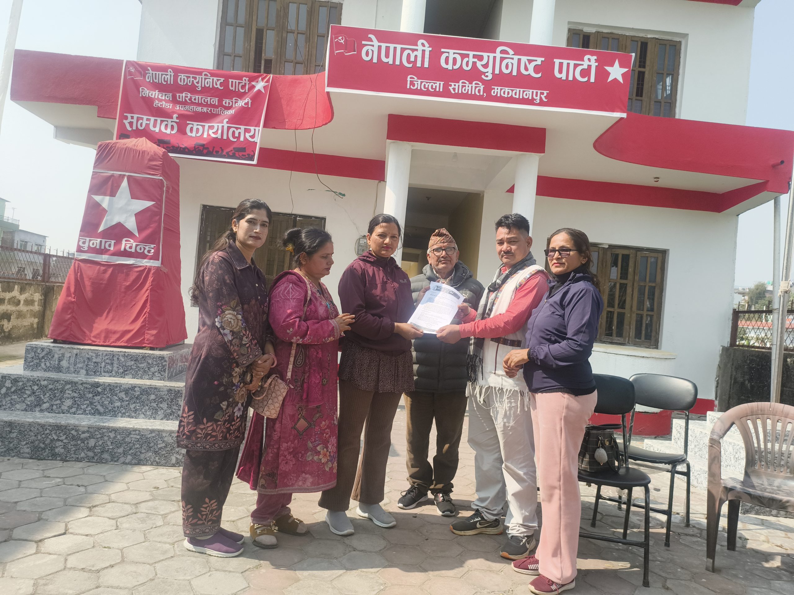 जिल्ला अध्यक्ष शारदा चौलागाईं, सचिव कल्पना आचार्य, प्रदेश अफिसर अप्सरा अर्याल र सदस्य सरला बानियाँको उपस्थितिमा उक्त ज्ञापनपत्र विभिन्न राजनीतिक दलका प्रतिनिधिलाई बुझाइएको हो। ज्ञापनपत्र नेकपा (एमाले) का कार्यालय प्रमुख गणेश तिमल्सिना, नेपाली कांग्रेसका प्रवक्ता अर्जुन प्रसाद चौलागाईं, राष्ट्रिय प्रजातन्त्र पार्टीका सचिवालय सदस्य पुष्कर अर्याल, राष्ट्रिय स्वतन्त्र पार्टीका जिल्ला सचिव सञ्जीव पाठक तथा नेपाल कम्युनिस्ट पार्टीका जिल्ला संयोजक भीम पाखृनलाई बुझाइएको जनाइएको छ।