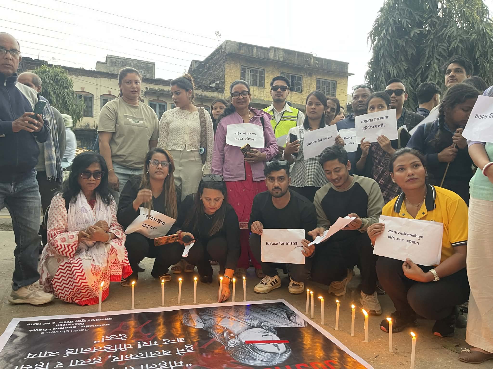 प्रदर्शनका क्रममा सहभागीहरूले “हत्यारालाई कारबाही गर”, “पीडितलाई न्याय दे”, “बलात्कारीलाई फाँसी दे”, “नारी अस्मिताको रक्षा गर”, “महिलाको सम्मान राष्ट्रको पहिचान हो”, “अन्तरजातीय प्रेमलाई सम्मान गर”, “दलित महिलामाथिको हिंसा बन्द गर” र “नेतृत्व फेरिरहन्छ, दलितहरू मरिरहन्छन्” जस्ता नारा लगाएका थिए।