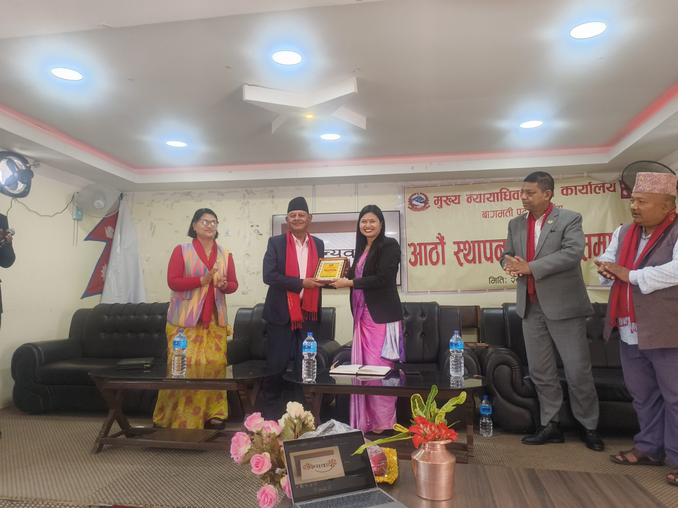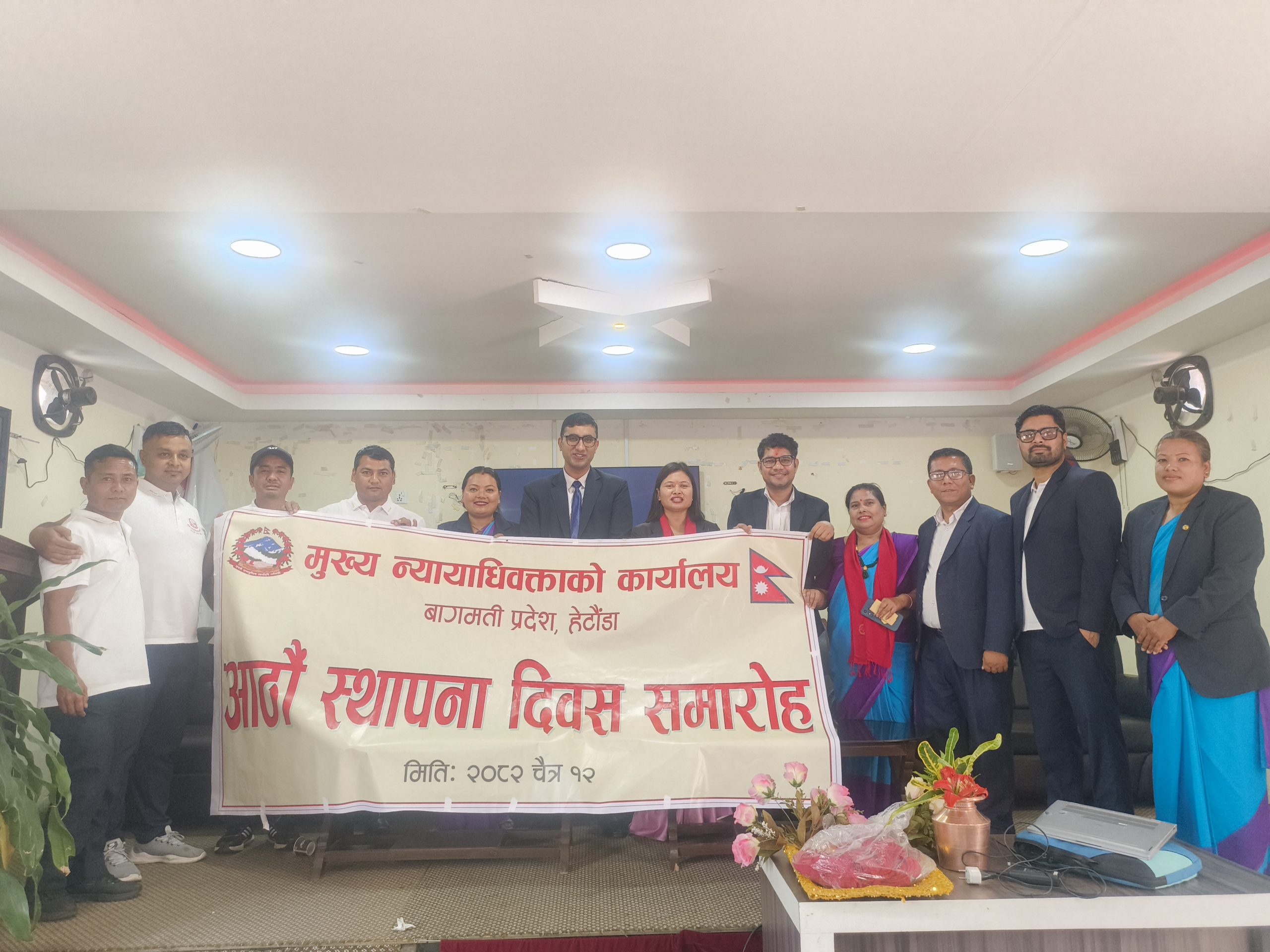 हेटौंडा । मुख्य न्यायाधिवक्ताको कार्यालय बागमती प्रदेशको आठौं स्थापना दिवस बिहीबार हेटौंडामा एक कार्यक्रमका बीच सम्पन्न भएको छ। कार्यक्रम मुख्य न्यायाधिवक्ता अप्सरा बस्नेतको सभाध्यक्षतामा सम्पन्न भएको थियो भने आन्तरिक मामिला तथा कानुन मन्त्रालय बागमती प्रदेशका मन्त्री शिवराज अधिकारी प्रमुख अतिथि रहेका थिए।